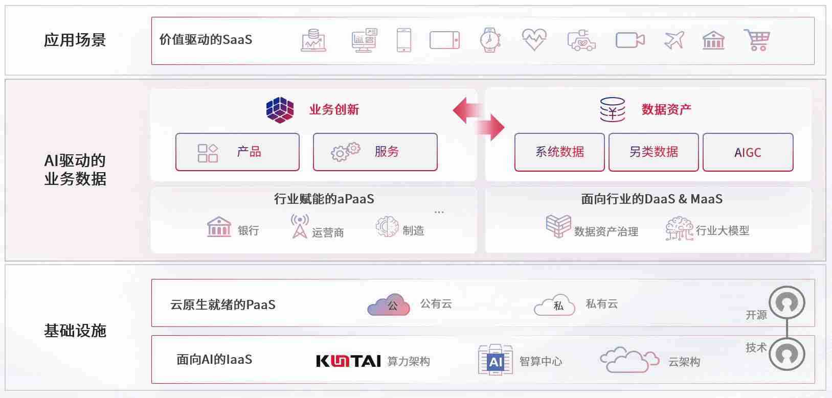 数字时代,,,围绕企业数字化转型的关键要素,,,PG国际数码开创性的提出数云融合战略和技术体系框架,,着力在云原生、、、、数字原生、、、、AI原生和信创产业上架构产品和服务能力,,,,为处在不同数字化转型阶段的快消零售、、汽车、、、、金融、、医疗、、、政企、、、、教育、、运营商等行业客户提供泛在的敏捷IT能力和融合的数据驱动能力,,,构建跨界融合创新的数字业务场景和新业务模式,,,助力企业级客户建立面向未来的核心能力和竞争优势,,全面推动社会的数字化、、、、智能化转型升级。。。
